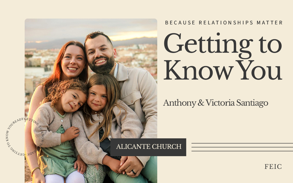 ‘Getting to Know You’ introduces you to pastors and ministry leaders within the Fellowship of European International Church network. In this piece, we feature Anthony and Victoria Santiago, who are planting an international church in Alicante, Spain. With roots in…
